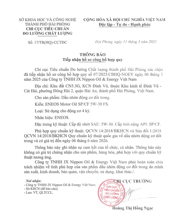 Sự ra đời sản phẩm dầu nhớt ENEOS SP/CF 5W-30 là kết quả không ngừng nghiên cứu, phát triển sản phẩm mới, cải tiến công nghệ sản xuất của ENEOS để tạo ra các loại sản phẩm dầu nhớt cao cấp đáp ứng sự mong đợi của khách hàng. Đồng thời khẳng định năng lực sản xuất của ENEOS đối với dòng sản phẩm này.